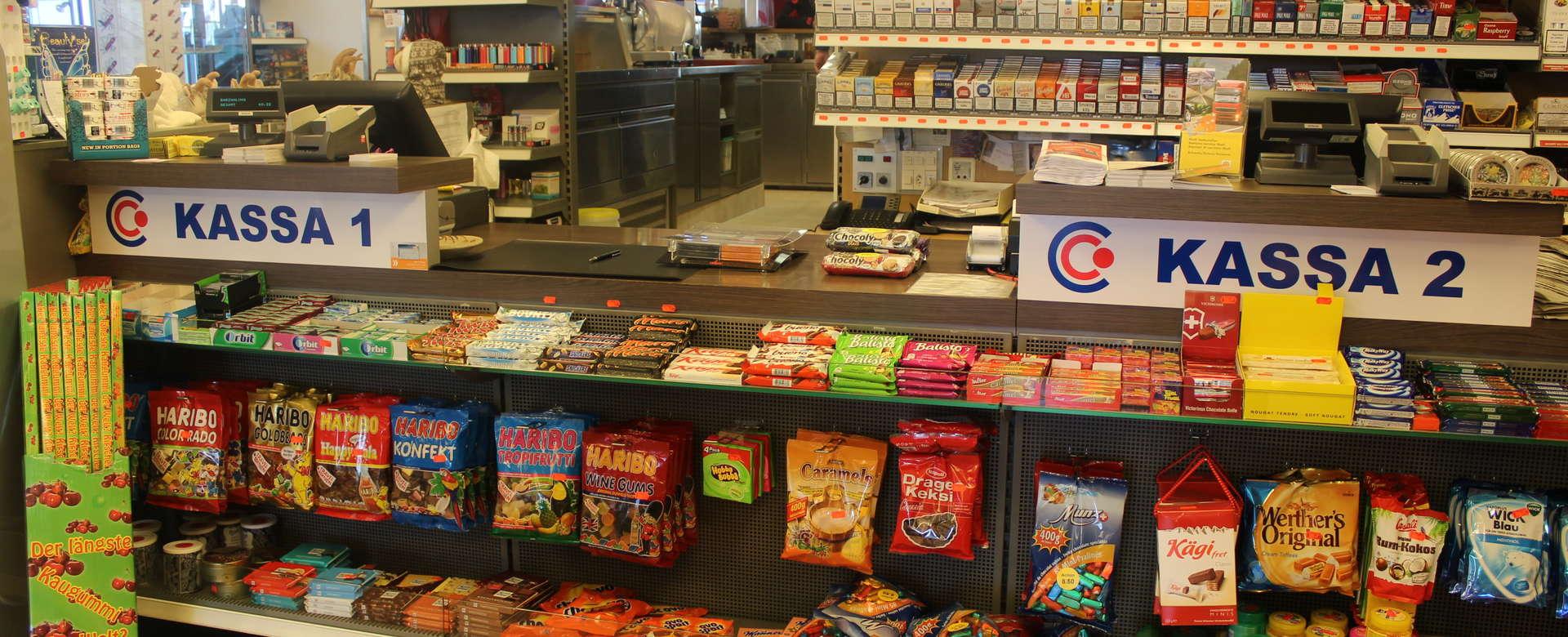 We offer in our shop a wide selection of interesting duty-free products such as a large assortment of Swiss chocolates, dried meat, bacon, sausages and numerous spirits, wines, champagne, liqueurs, Souveniers, cigarettes, tobacco, magazines, newspapers u.v.m. Even butter and sugar (10 kilo and 25 kilo bags) can be found in our well-stocked shop.